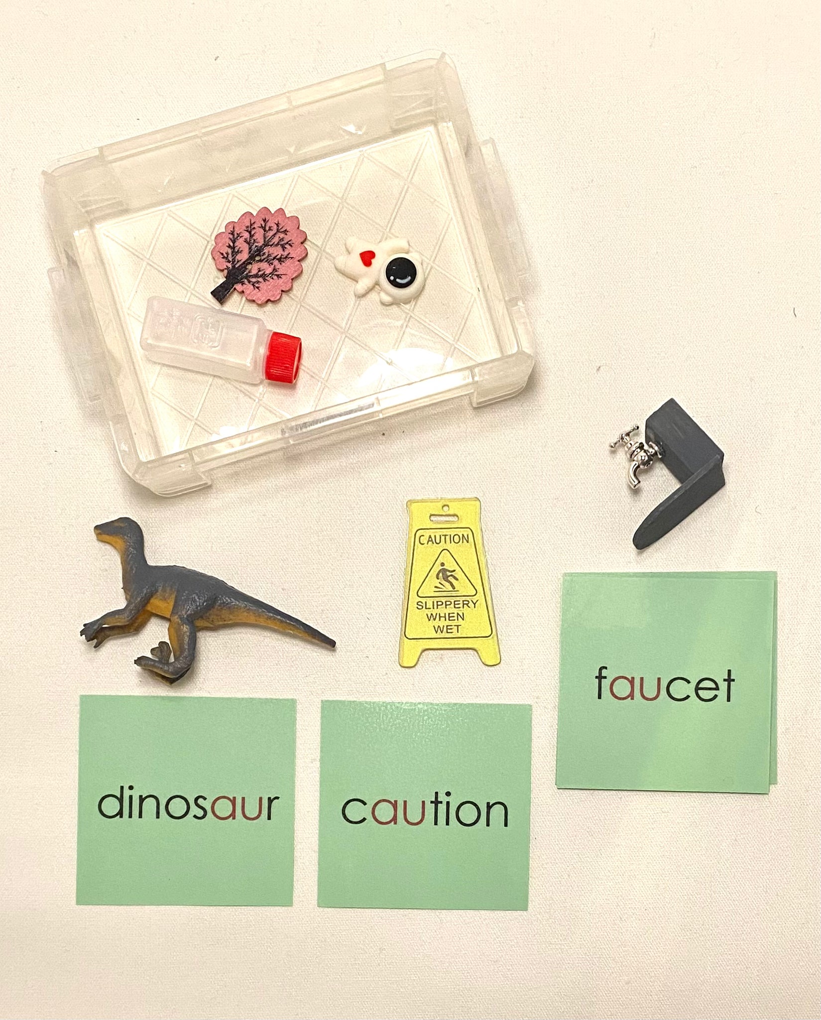 Montessori Individual Diphthong Phonogram (au) Object Box