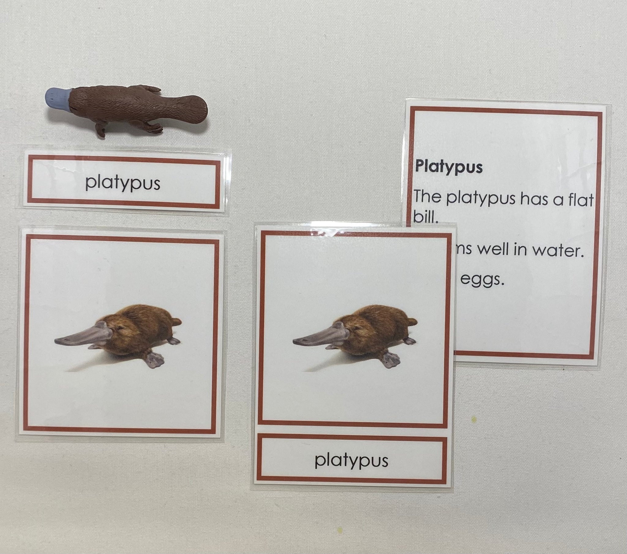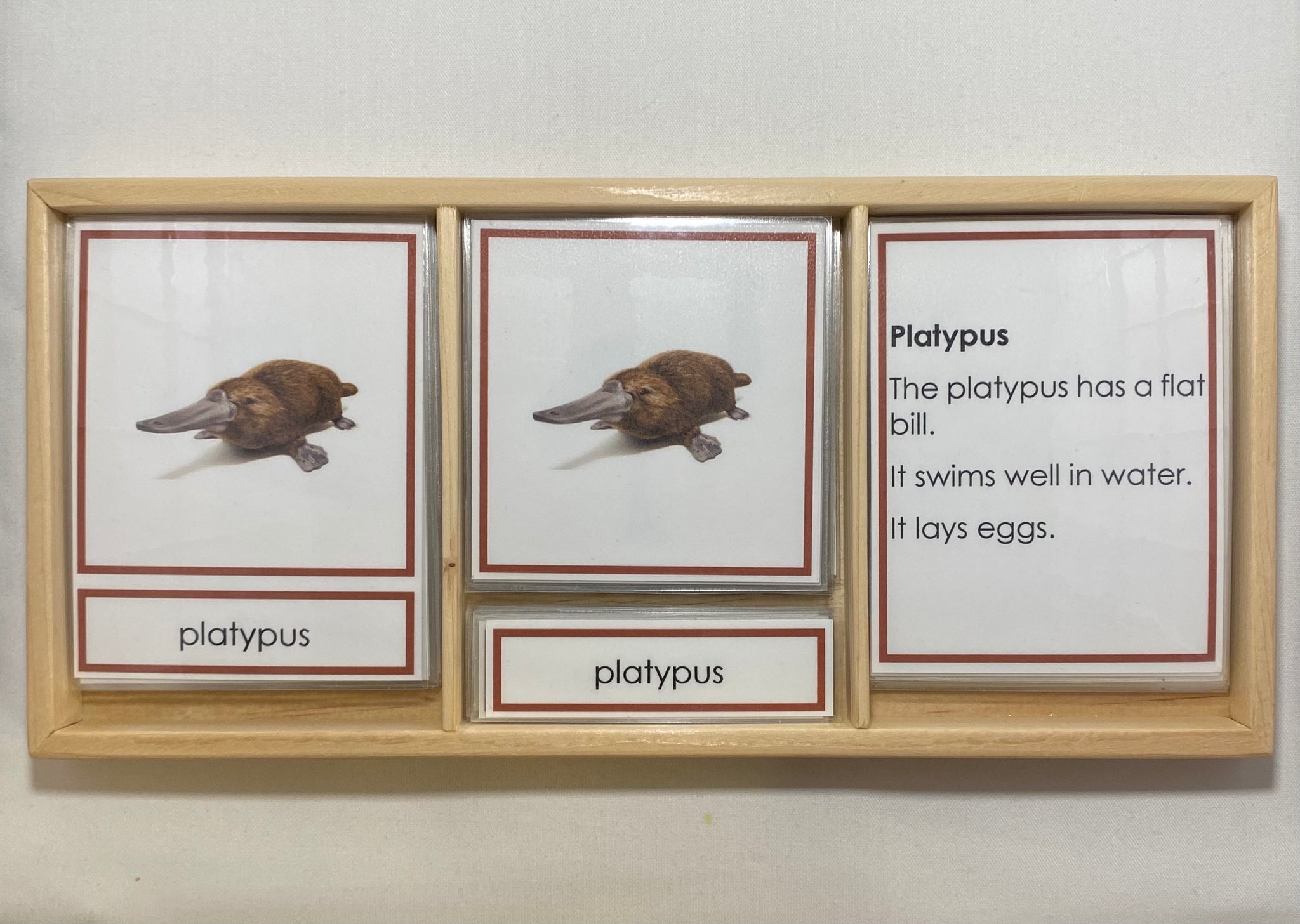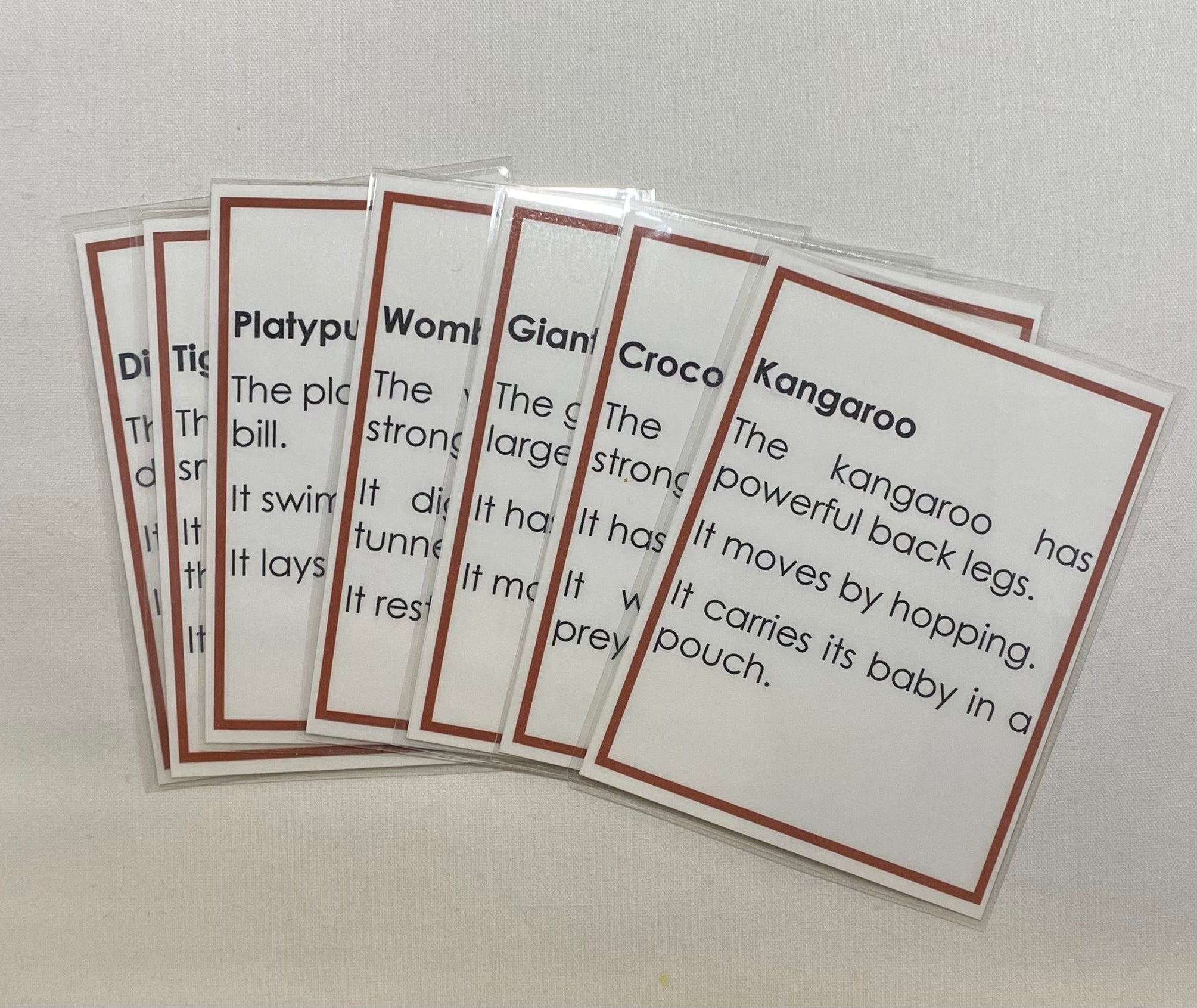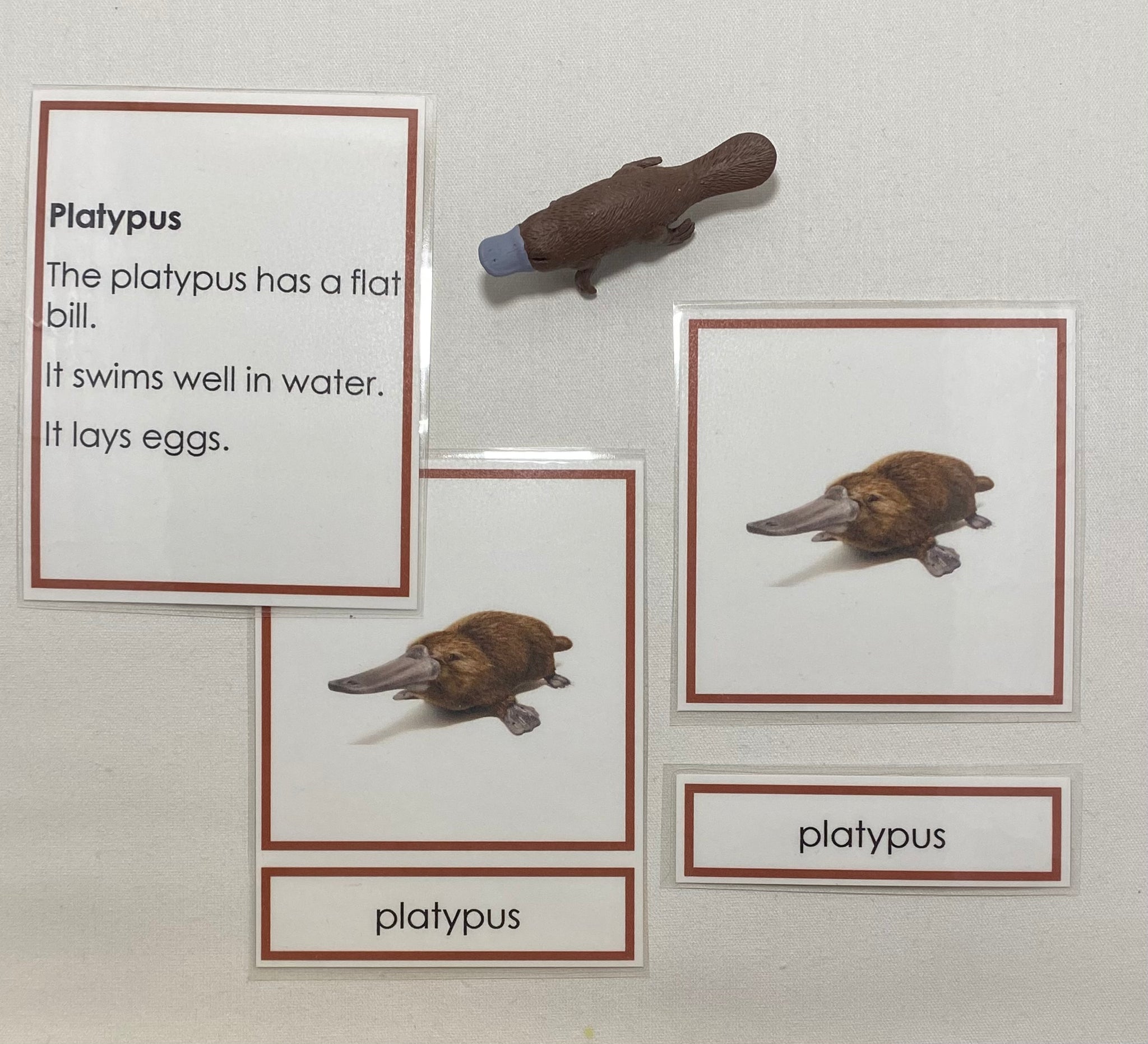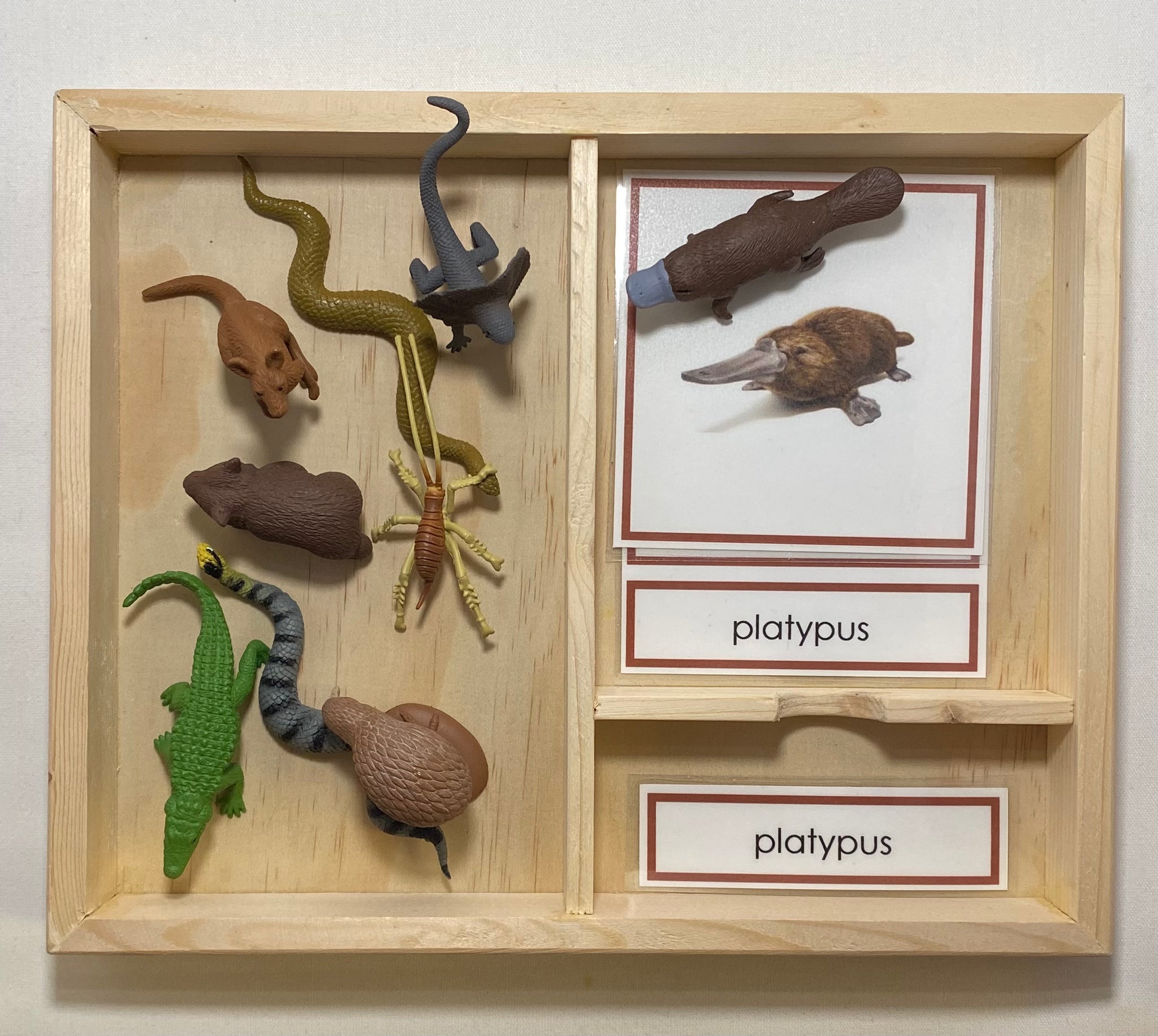 Oceania Animals Classification Set featuring eight animals native to Australia and New Zealand. This Montessori style material supports continent studies, zoology vocabulary, classification, and early reading skills.